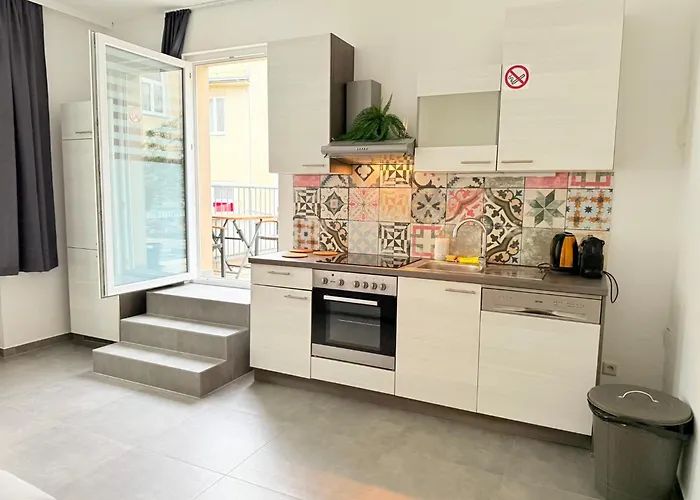 Апартаменти Klein Aber Fein Mit Terrasse Відень розташовані на відстані приблизно 10 хвилин їзди машиною від Пратера та на відстані 2.4 км від найкращого сімейного місця, такого як Віденське колесо огляду. До послуг апартаментів входять Wi-Fi та парковка.